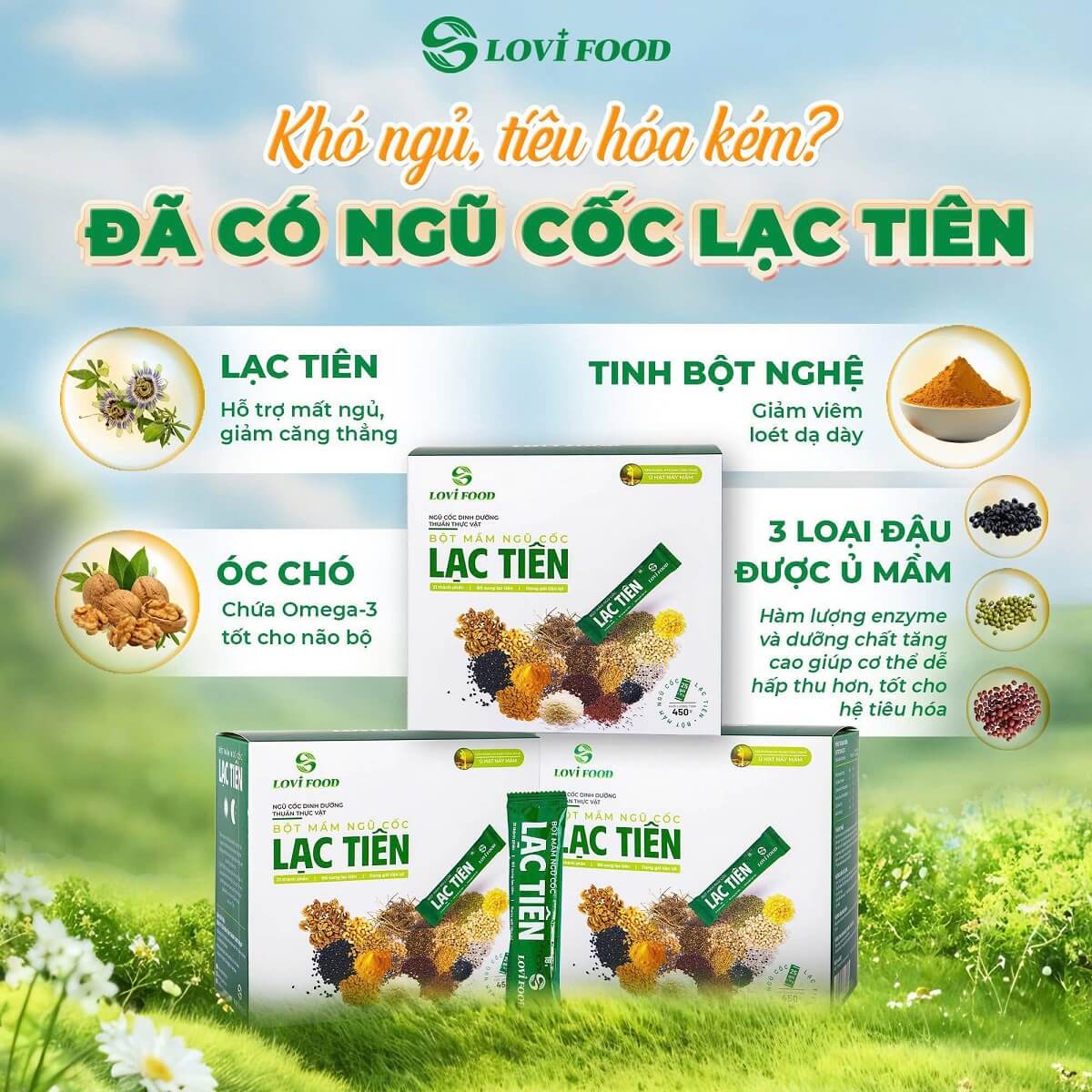 Bột mầm ngũ cốc Lạc Tiên Lovifood là dòng sản phẩm dinh dưỡng chuyên biệt dành cho người mất ngủ, được kết hợp hoàn hảo giữa các loại hạt nảy mầm và chiết xuất cao lạc tiên thuần khiết. Nhờ quy trình sản xuất hiện đại, sản phẩm không chỉ cung cấp nguồn năng lượng dồi dào mà còn hỗ trợ dưỡng tâm, an thần, giúp bạn đi vào giấc ngủ tự nhiên và sâu hơn. Đây là giải pháp an toàn, lành tính từ thiên nhiên giúp giảm căng thẳng và cải thiện sức khỏe hệ thần kinh mỗi ngày. Đừng bỏ lỡ cơ hội hồi phục giấc ngủ vàng cùng Lovifood để tận hưởng cuộc sống trọn vẹn và tràn đầy năng lượng.