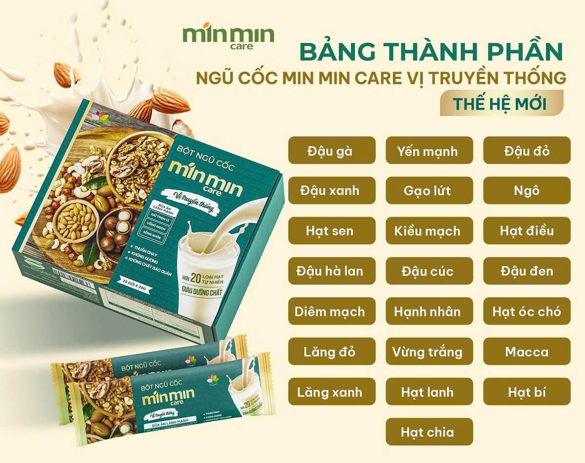 Bột ngũ cốc Min Min Care là dòng sản phẩm dinh dưỡng từ các loại hạt cao cấp, được thiết kế với những công dụng chính sau đây: